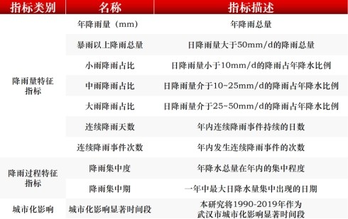 武漢市多維度降雨特征指標(biāo)體系表