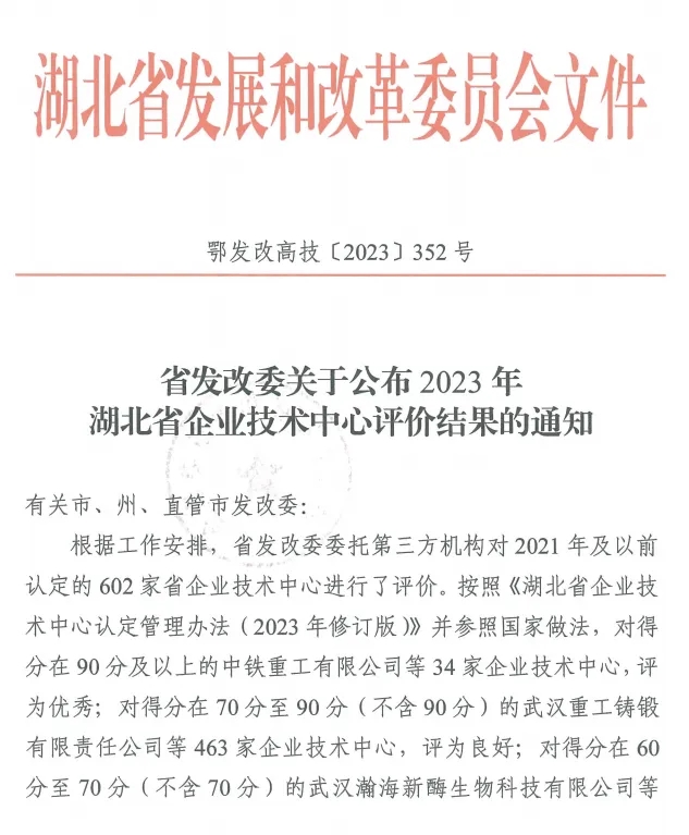 完成湖北省發(fā)改委組織的省企業(yè)技術(shù)中心三年評(píng)價(jià)并獲評(píng)良好