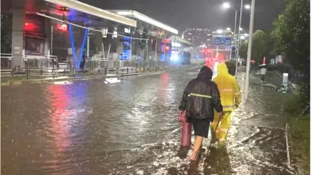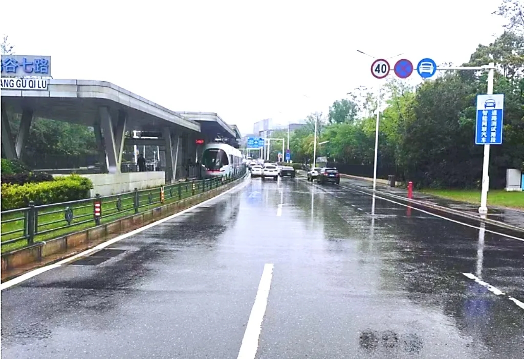 時(shí)間回到2019年6月21日,武漢經(jīng)歷了當(dāng)年24小時(shí)最大累計(jì)降雨量174.7毫米的暴雨,高新大道與光谷七路路口出現(xiàn)了嚴(yán)重漬水,路面最大漬水深度達(dá)到50cm,且有部分雨水通過有軌電車與地鐵換乘通道進(jìn)入地鐵站點(diǎn),嚴(yán)重影響周邊交通出行。