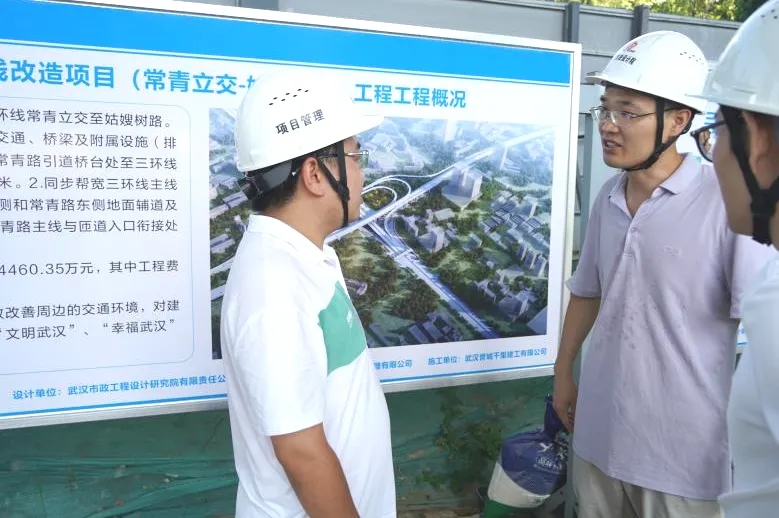 ? ? 在三環(huán)線改造項(xiàng)目(常青立交—姑嫂樹路)工程現(xiàn)場,武漢市政院綜合設(shè)計(jì)院項(xiàng)目負(fù)責(zé)人和技術(shù)人員正在頂著烈日檢查施工情況。由于三環(huán)線常青立交附近地下管線錯綜復(fù)雜且地面交通流量巨大,他們既要協(xié)調(diào)單位內(nèi)部各專業(yè),還要與建設(shè)、施工和監(jiān)理單位溝通,在保證項(xiàng)目按計(jì)劃進(jìn)度推進(jìn)的同時(shí)確保對交通造成的影響降到最低。雖然項(xiàng)目現(xiàn)場熱浪滾滾,但他們?nèi)砸燥枬M的熱情為項(xiàng)目按時(shí)順利通車貢獻(xiàn)自己的力量。