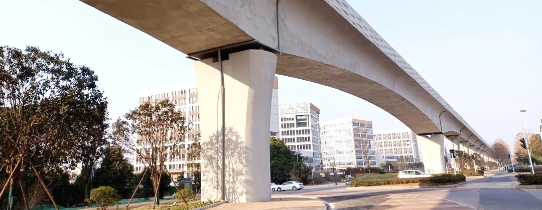 2020年開工建設(shè)的軌道交通前川線,公司承擔(dān)了長達(dá)6.4公里的高架區(qū)間軌道交通橋梁設(shè)計(jì)工作。工程類型復(fù)雜,樣式繁多,既有簡支梁、支架現(xiàn)澆連續(xù)梁、大跨變截面懸澆梁等不同橋型結(jié)構(gòu),又有單線橋、雙線橋、四線橋等不同寬度軌道橋,還有高等減震區(qū)、中等減震區(qū)等不同軌道系統(tǒng),幾乎涵蓋了大部分軌道橋梁類型。在錘煉技術(shù)、沉淀經(jīng)驗(yàn)的同時(shí),公司橋梁設(shè)計(jì)團(tuán)隊(duì)多次突破自我,刷新多項(xiàng)記錄:大跨變截面連續(xù)梁18處(節(jié)點(diǎn)橋總長約2.6km,占比41%),節(jié)點(diǎn)橋占比為武漢軌道交通高架區(qū)間之最;天騰區(qū)間四線渡線區(qū),現(xiàn)澆連續(xù)箱梁總寬42.5m,是目前武漢最寬的預(yù)應(yīng)力砼現(xiàn)澆箱梁;跨漢孝高速處大跨懸澆梁,單個(gè)懸澆節(jié)段達(dá)4.5m,創(chuàng)造了目前武漢軌道交通橋梁單節(jié)段懸澆長度之首。