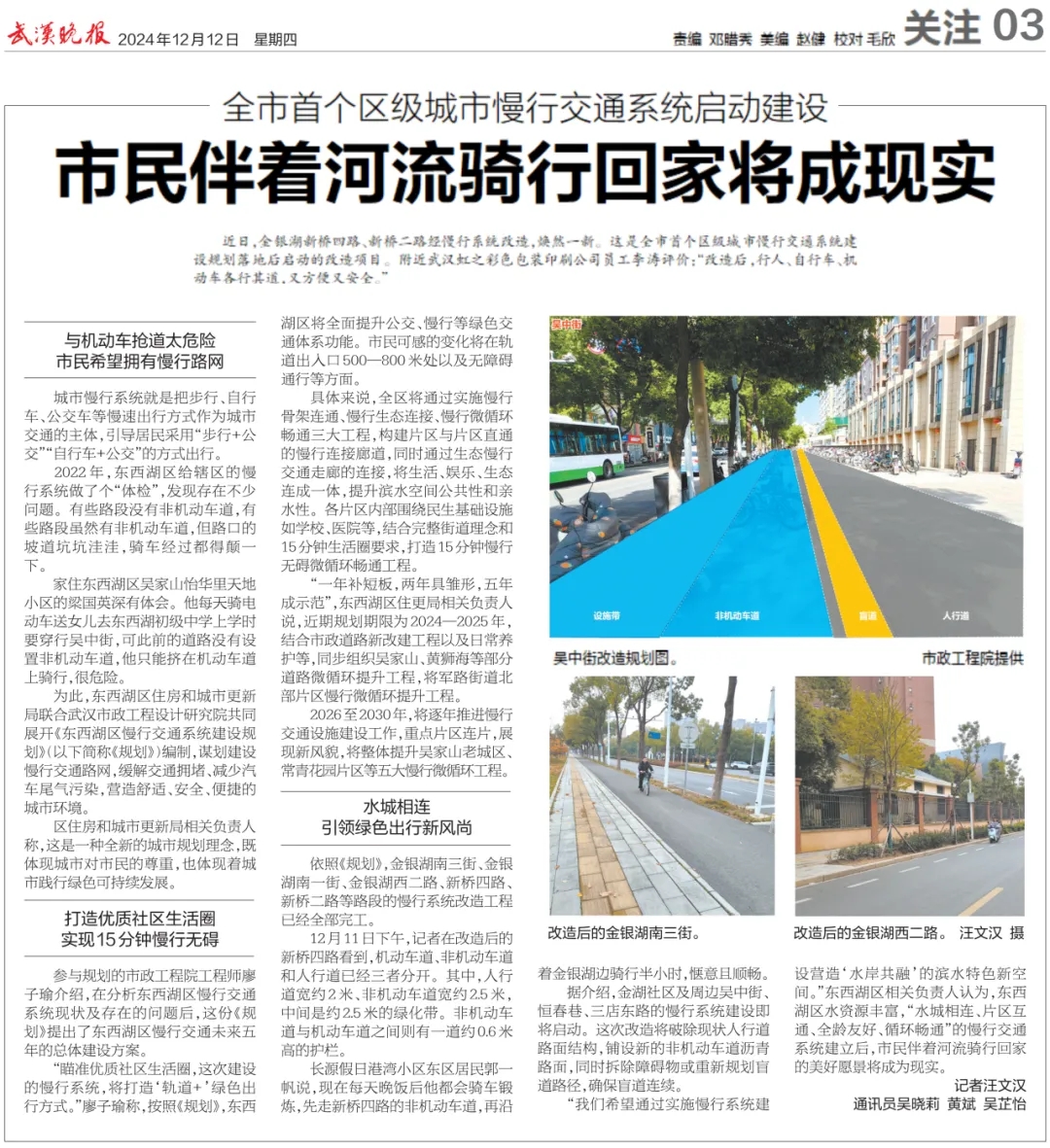 12月12日,《武漢晚報》等多家媒體紛紛報道《全市首個區(qū)級城市慢行交通系統(tǒng)啟動建設》。