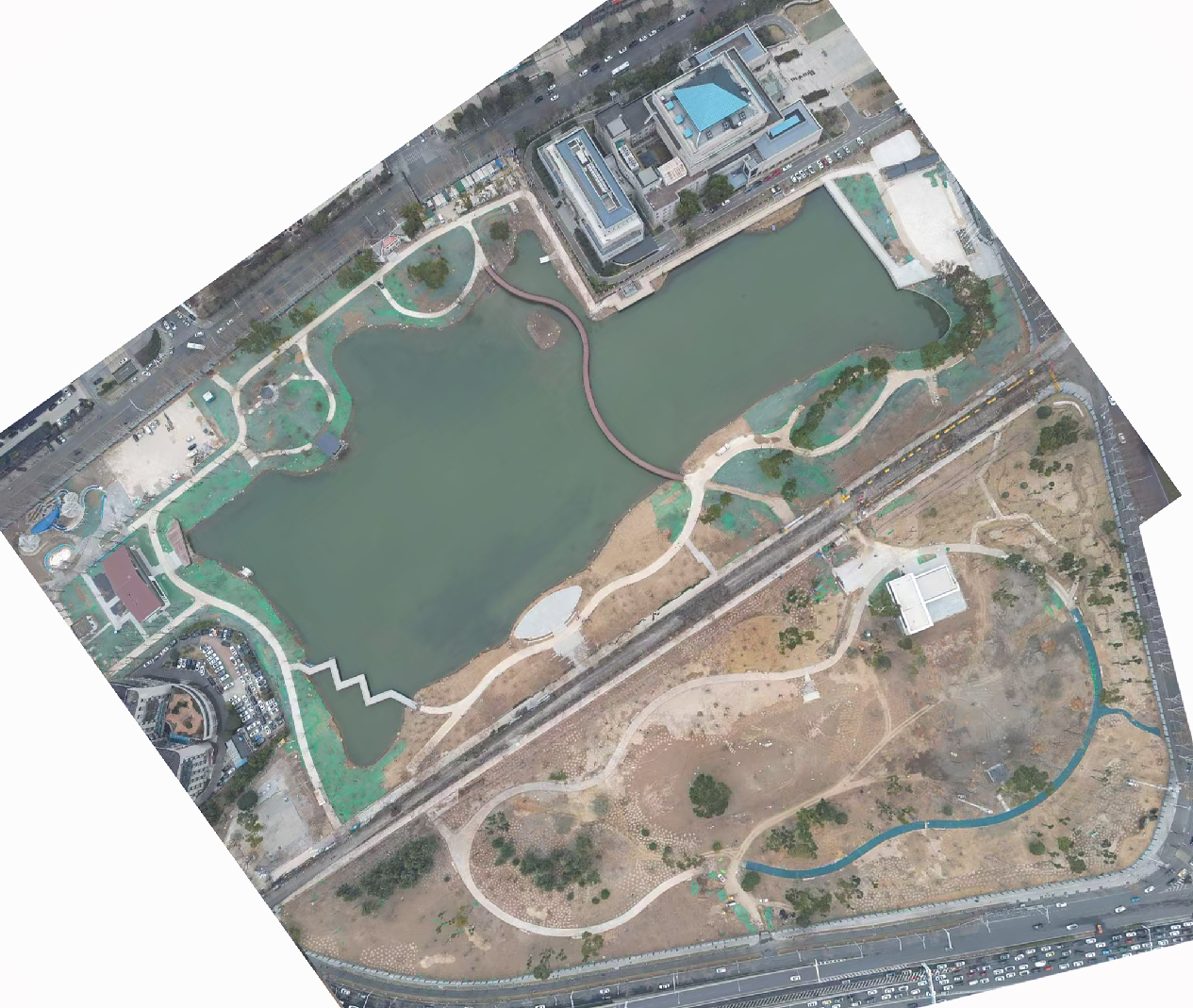 ? ? 后襄河公園綜合改造提升項(xiàng)目于2023年10月啟動(dòng)建設(shè),分階段實(shí)施。目前己基本完成主體工程,正進(jìn)行相關(guān)完善和收尾工作,預(yù)計(jì)2025年2月底開(kāi)園。實(shí)施過(guò)程中既有業(yè)主單位江漢區(qū)園林局的鼎力支持,也有江漢區(qū)發(fā)改局、城管局、水務(wù)局、環(huán)保局等主管部門(mén)的辛勤付出,為項(xiàng)目的順利實(shí)施提供了全方位的上層支撐。本工程各參建單位在武漢市政院的統(tǒng)籌協(xié)調(diào)下通力合作,將圖紙上的美好愿景一一變?yōu)楝F(xiàn)實(shí),無(wú)論是跨湖觀景棧橋的優(yōu)雅身姿,還是兒童樂(lè)園的歡聲笑語(yǔ),亦或是一磚一瓦一草一木,都將是匠心獨(dú)運(yùn)、精益求精的最佳見(jiàn)證。