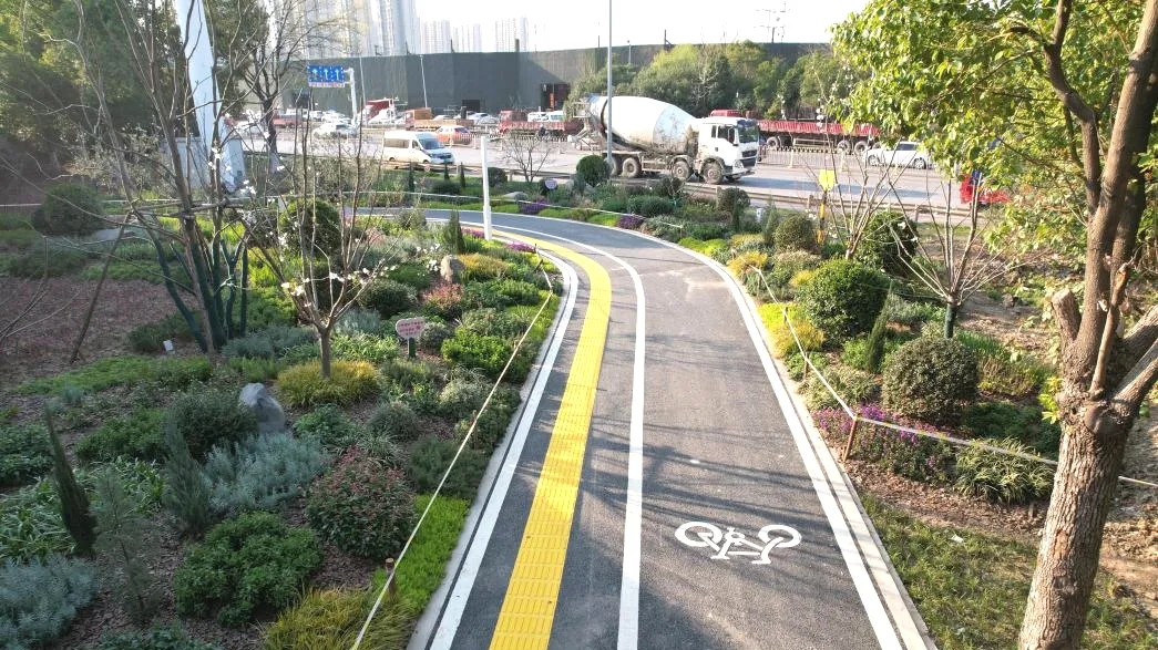 為提升區(qū)域景觀性,對(duì)道路兩側(cè)具備綠化條件的區(qū)域進(jìn)行植被覆綠,讓裸地穿“綠衣”,在楊春湖公園入口、友誼大道臨街面增設(shè)花境,打造靚麗節(jié)點(diǎn)。