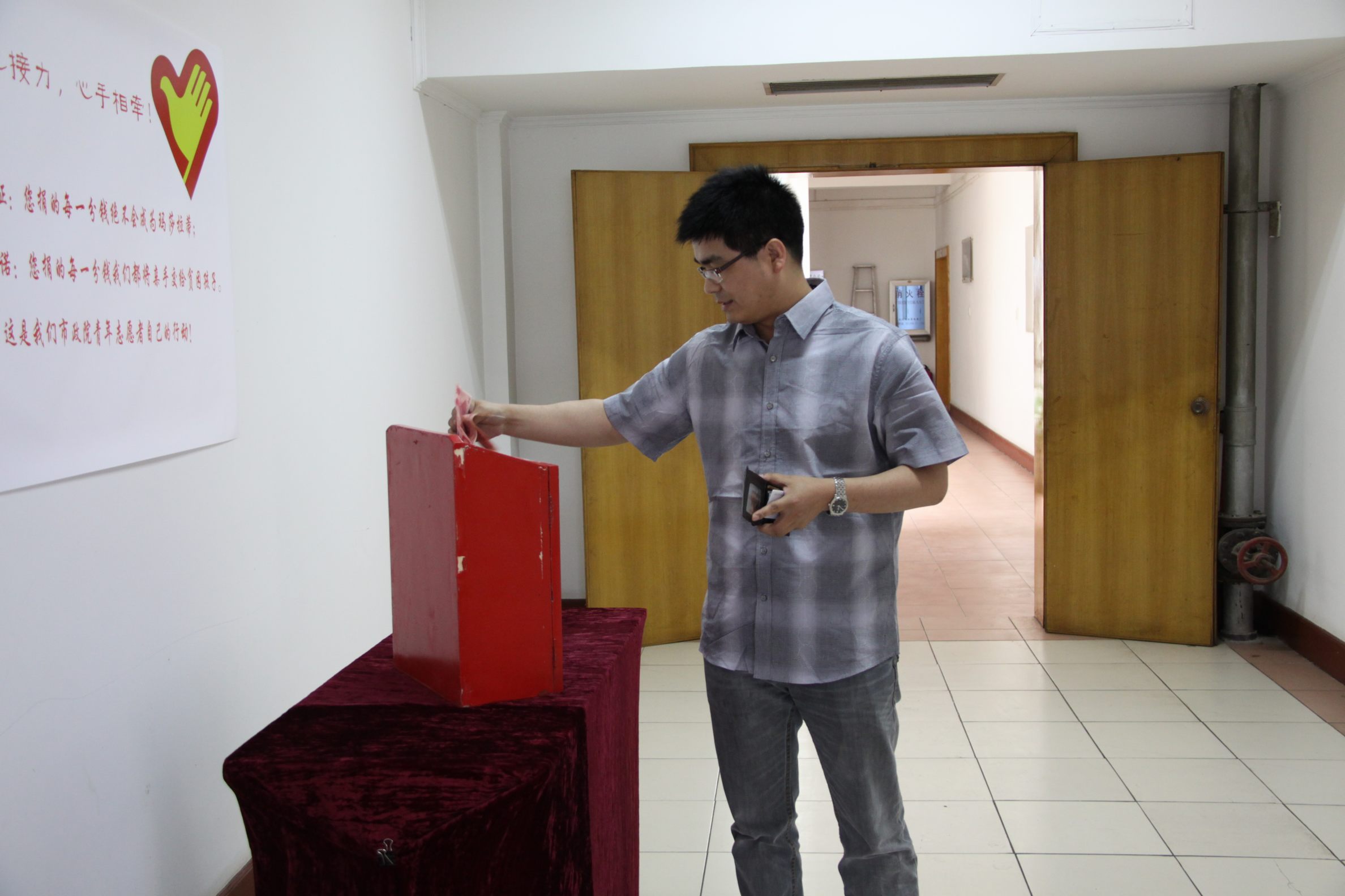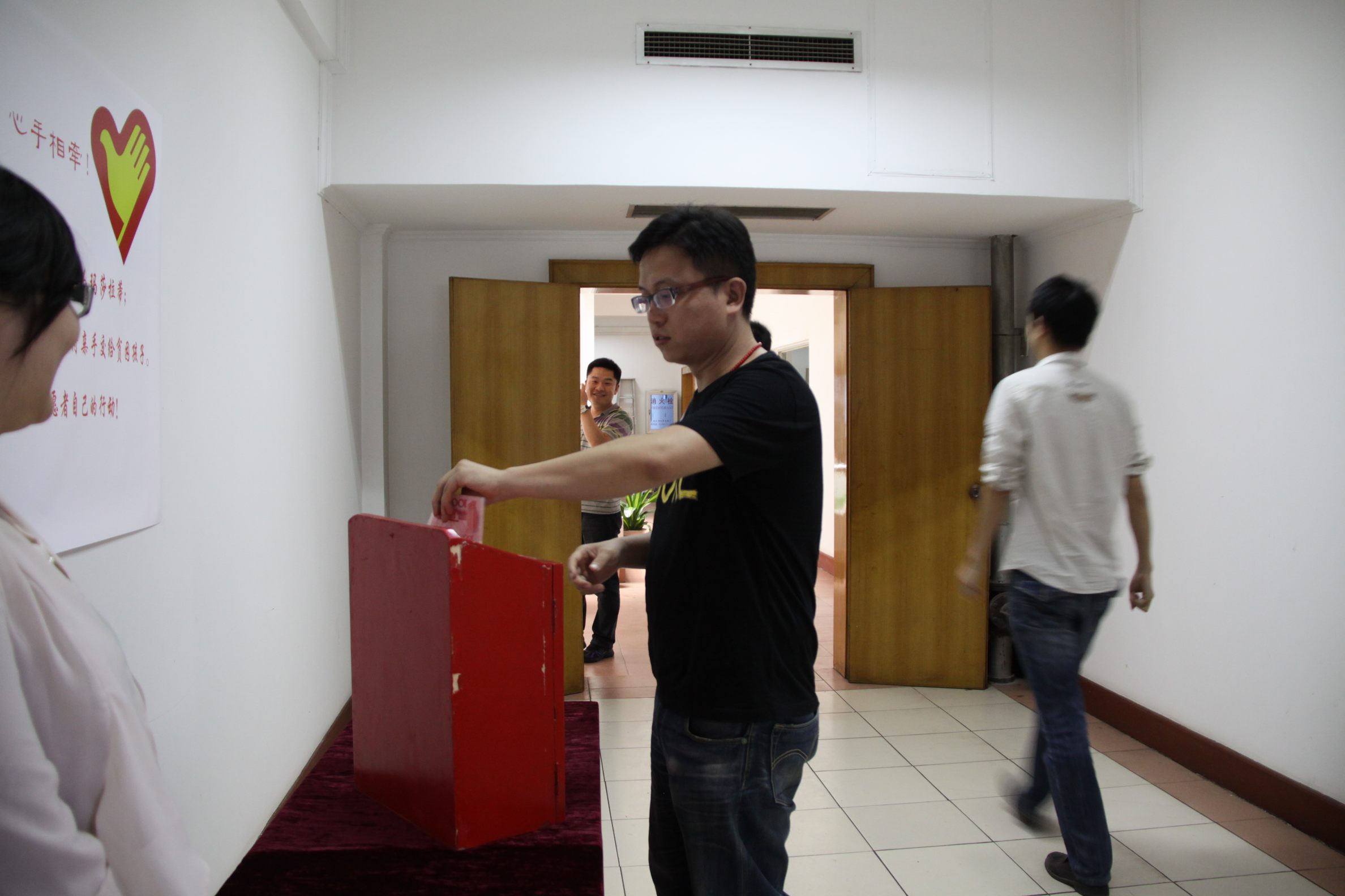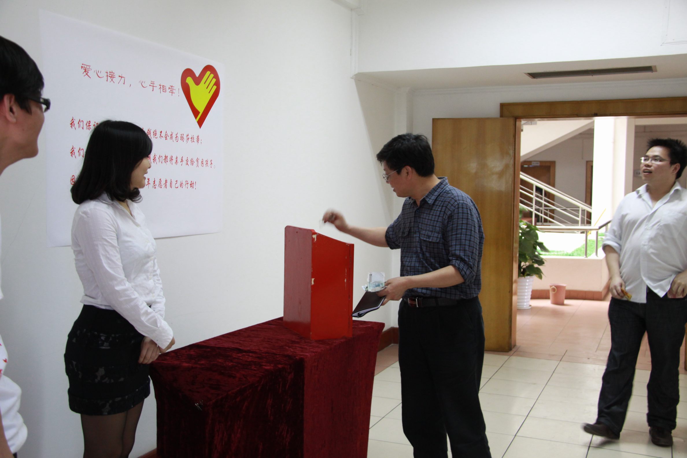 ??? 在“五四”青年節(jié)到來(lái)之際,公司青年志愿者代表在食堂設(shè)置了捐款箱,開(kāi)展愛(ài)心募捐活動(dòng)。孩子們的貧困生活感動(dòng)了許多人,在得知為學(xué)生募捐的消息后,公司員工紛紛慷慨解囊,一筆筆善款代表著一顆顆愛(ài)心,匯聚到捐款箱中,真情在每個(gè)人心中涌動(dòng)、流淌。