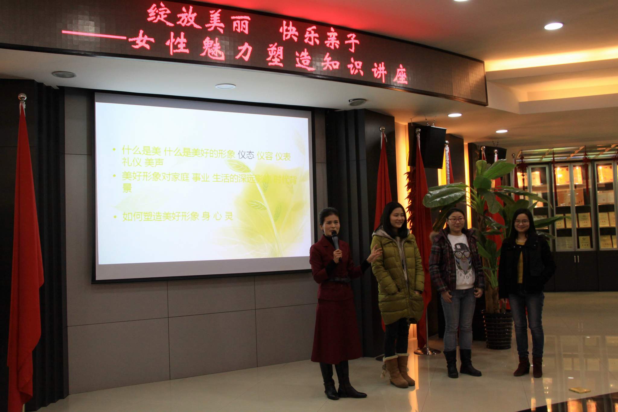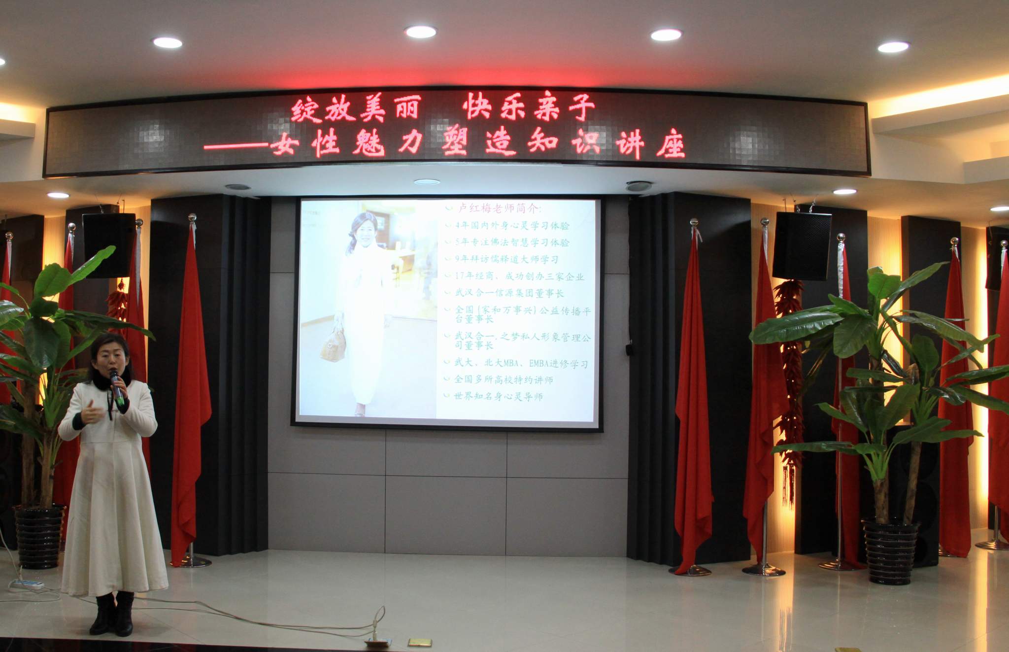 ??? 3月6日,為慶?!叭恕眹?guó)際婦女節(jié),公司在二樓會(huì)議室開(kāi)展了以“綻放美麗,快樂(lè)親子”為主題的女性魅力塑造知識(shí)講座,邀請(qǐng)了合一信源集團(tuán)創(chuàng)始人、全國(guó)“家和萬(wàn)事興”公益?zhèn)鞑ブ髦v師盧紅梅女士親臨授課,為公司女員工送上了一份溫馨的節(jié)日禮物,公司主要領(lǐng)導(dǎo)和全體女員工參加了講座。
