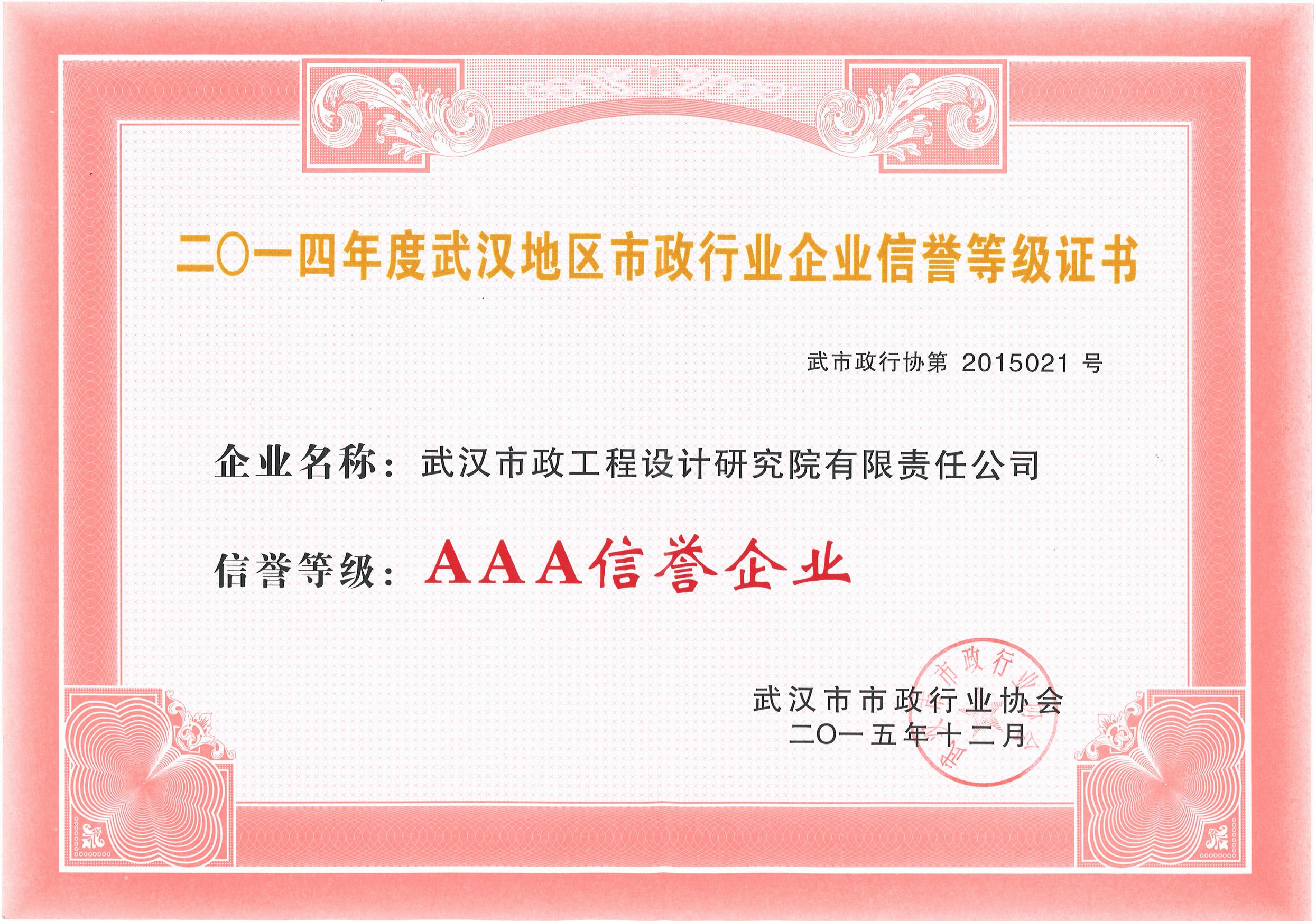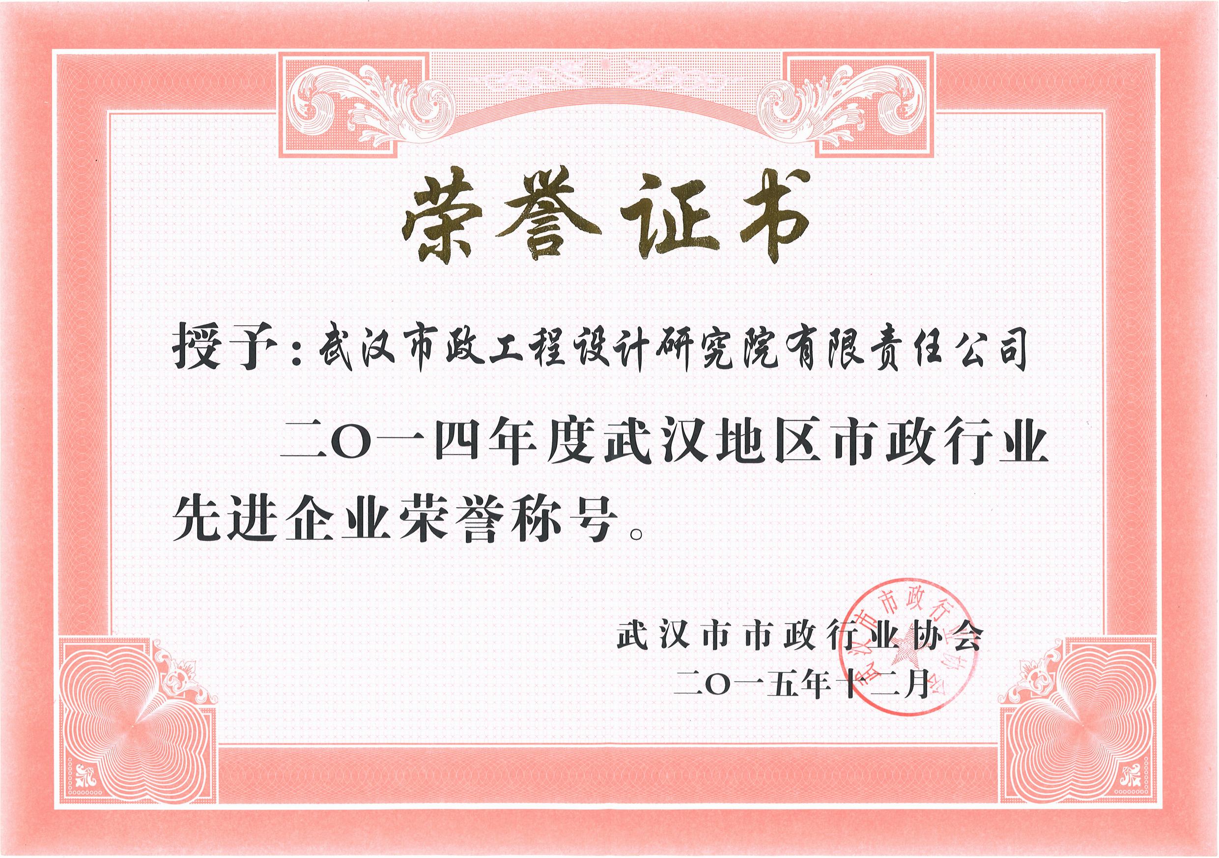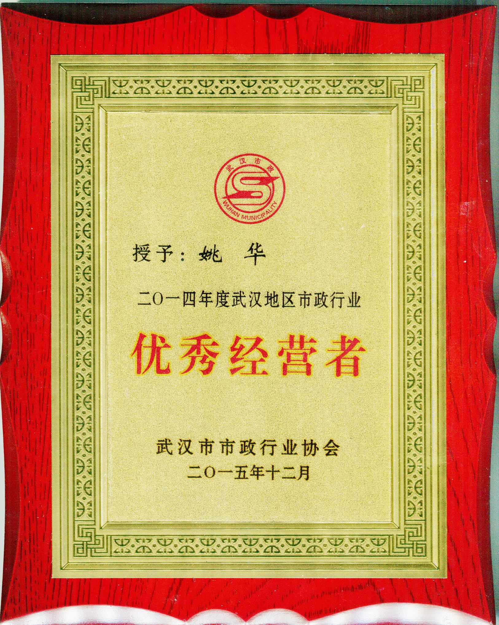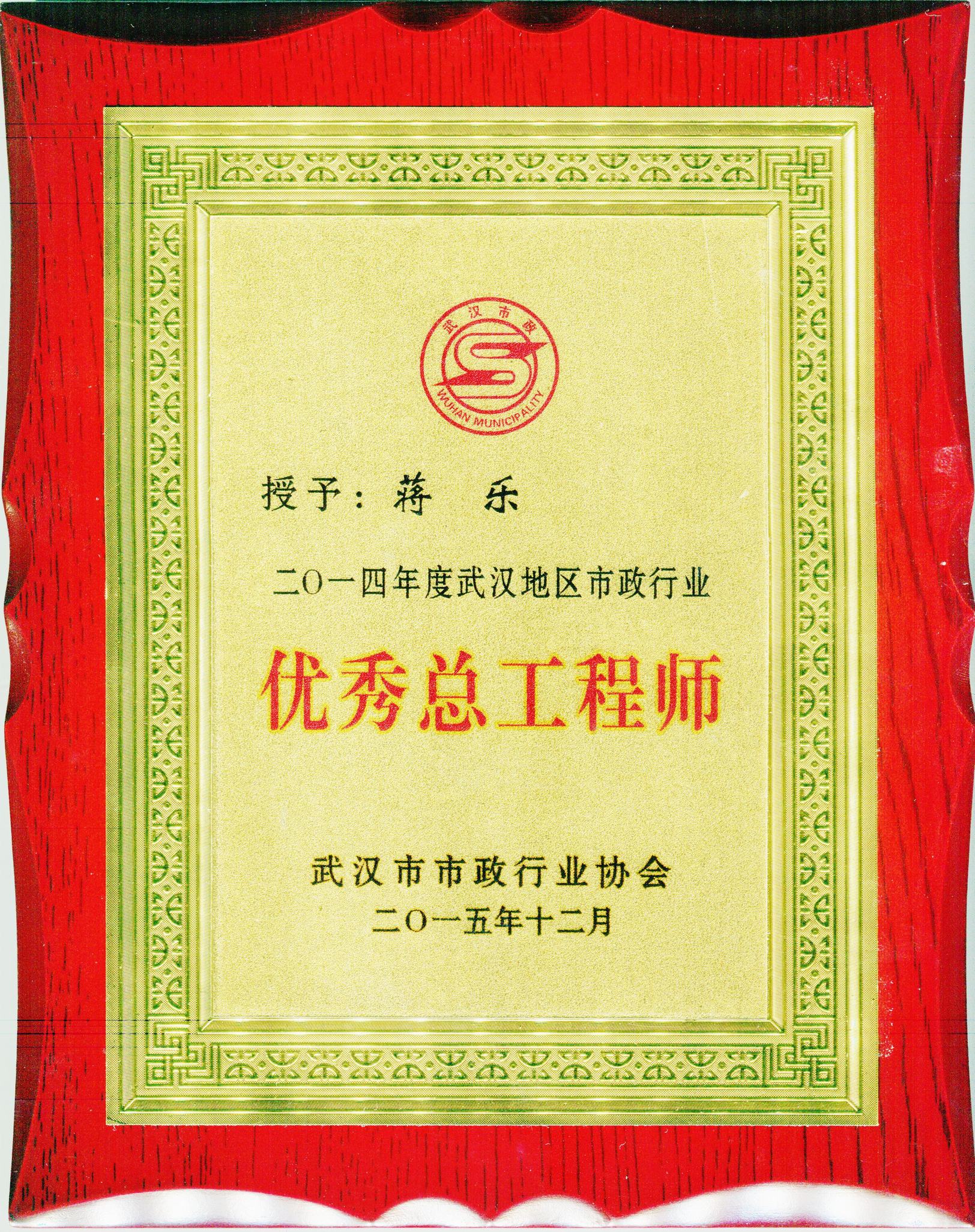 ??? 在2014年度的武漢市市政行業(yè)協(xié)會(huì)榮譽(yù)評(píng)選中,公司榮獲了“武漢地區(qū)市政行業(yè)先進(jìn)企業(yè)”、“AAA信譽(yù)企業(yè)”等榮譽(yù)稱號(hào);總經(jīng)理姚華同志榮獲“優(yōu)秀經(jīng)營者”稱號(hào);副總經(jīng)理、總工程師蔣樂榮獲“優(yōu)秀總工程師”稱號(hào);萬飛、盛建偉榮獲“優(yōu)秀監(jiān)理工程師”稱號(hào)。