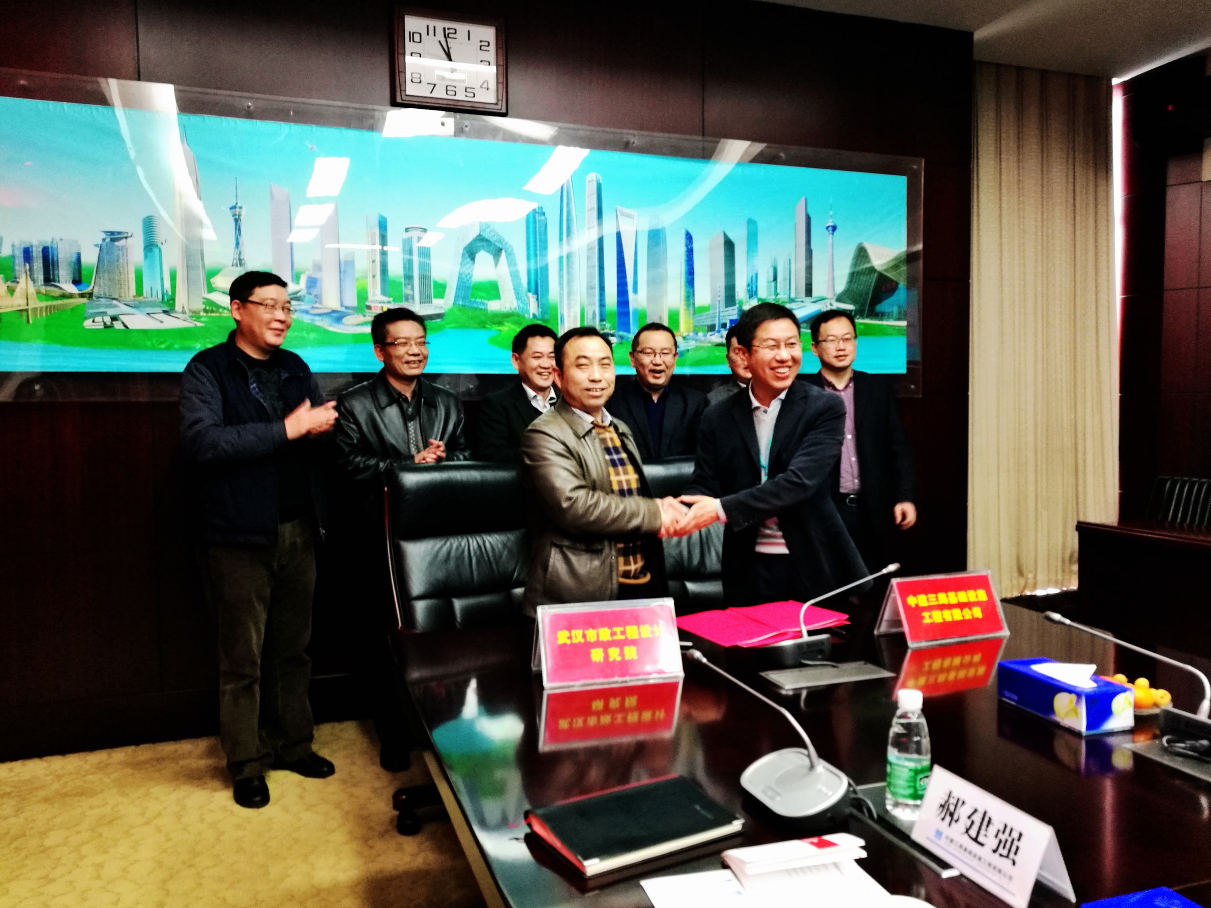 ??? 協(xié)議簽訂前,雙方進行了簡短的會談,公司董事長柯昌春和中建三局基礎設施工程有限公司董事長王洪濤就雙方各自的基本情況進行了介紹,就雙方戰(zhàn)略合作方向和前景進行了展望。雙方共同表示,期待以本次戰(zhàn)略合作協(xié)議簽訂為契機,推動雙方在更廣泛的領域進行合作,攜手進行市場開拓,實現(xiàn)互利共贏。
