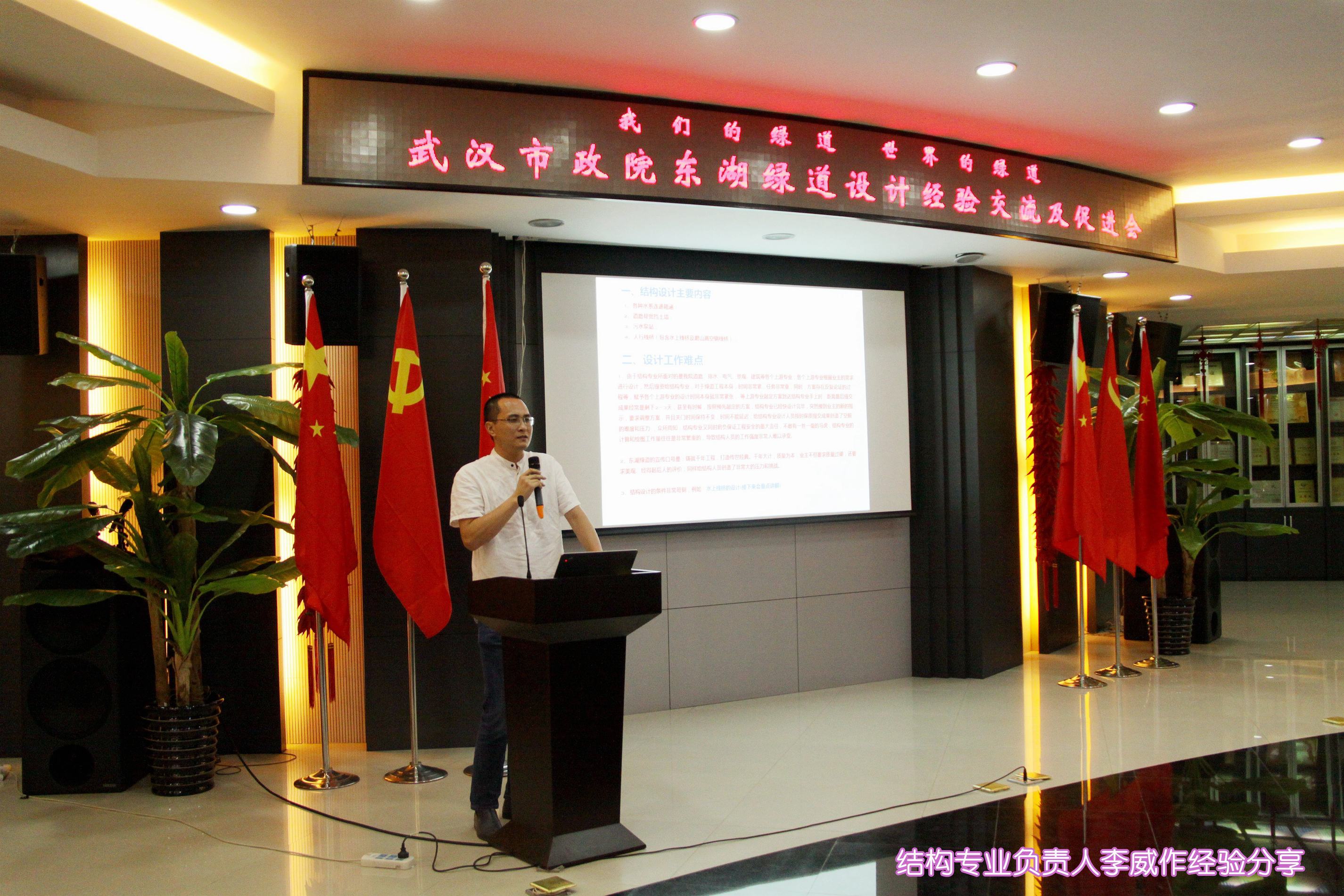 ??? 會議由總經(jīng)理助理、東湖綠道項目經(jīng)理呂錦剛同志首先發(fā)言,他因在東湖綠道一期工程中的突出表現(xiàn),被市總工會授予“五一勞動獎?wù)隆睒s譽稱號。他以《如何在重大項目中擔(dān)任合格的項目經(jīng)理》為題,結(jié)合自己在東湖綠道中的親身體會,向在座的青年員工闡釋了如何在項目中學(xué)習(xí)、成長和成才。隨后,東湖綠道設(shè)計團(tuán)隊的核心成員們順次登場,項目負(fù)責(zé)人周紅霞、景觀專業(yè)負(fù)責(zé)人彭鐘、結(jié)構(gòu)專業(yè)負(fù)責(zé)人李威、給排水專業(yè)負(fù)責(zé)人李昂澤等,他們以生動的PPT為載體,為大家展示設(shè)計亮點、總結(jié)工作經(jīng)驗、暢談個人感悟,會議現(xiàn)場不時響起熱烈的掌聲