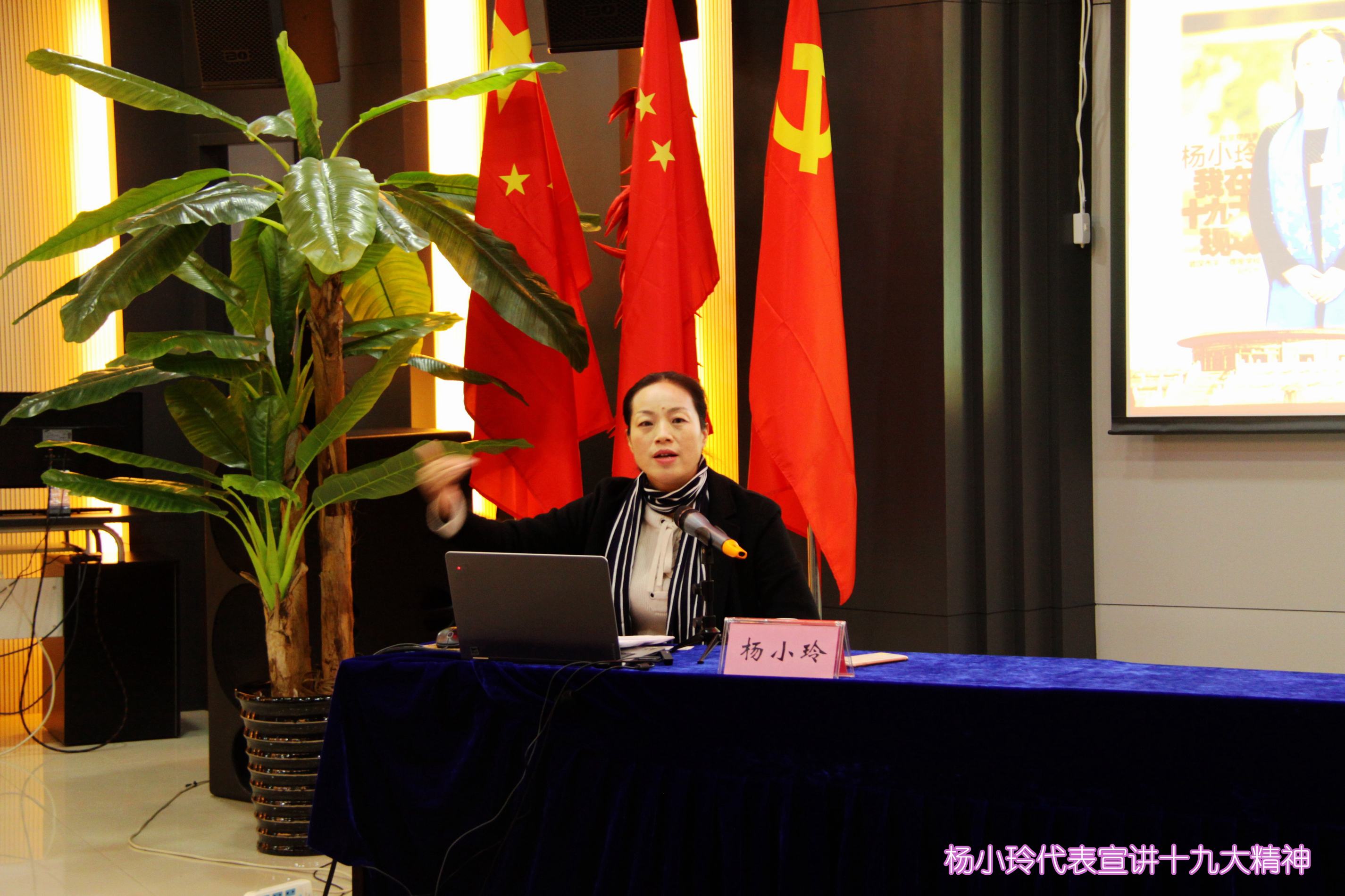 ??? 為深入學(xué)習(xí)宣傳黨的十九大精神,深刻領(lǐng)會(huì)和全面把握黨的十九大報(bào)告的科學(xué)內(nèi)涵和精神實(shí)質(zhì),切實(shí)把廣大黨員干部的思想認(rèn)識(shí)和行動(dòng)統(tǒng)一到黨的十九大精神上來(lái),12月8日下午,公司在西二樓會(huì)議室舉行黨的十九大精神宣講報(bào)告會(huì),特邀黨的十九大代表、湖北省省委委員、武漢市第一聾校副校長(zhǎng)楊小玲作宣講。