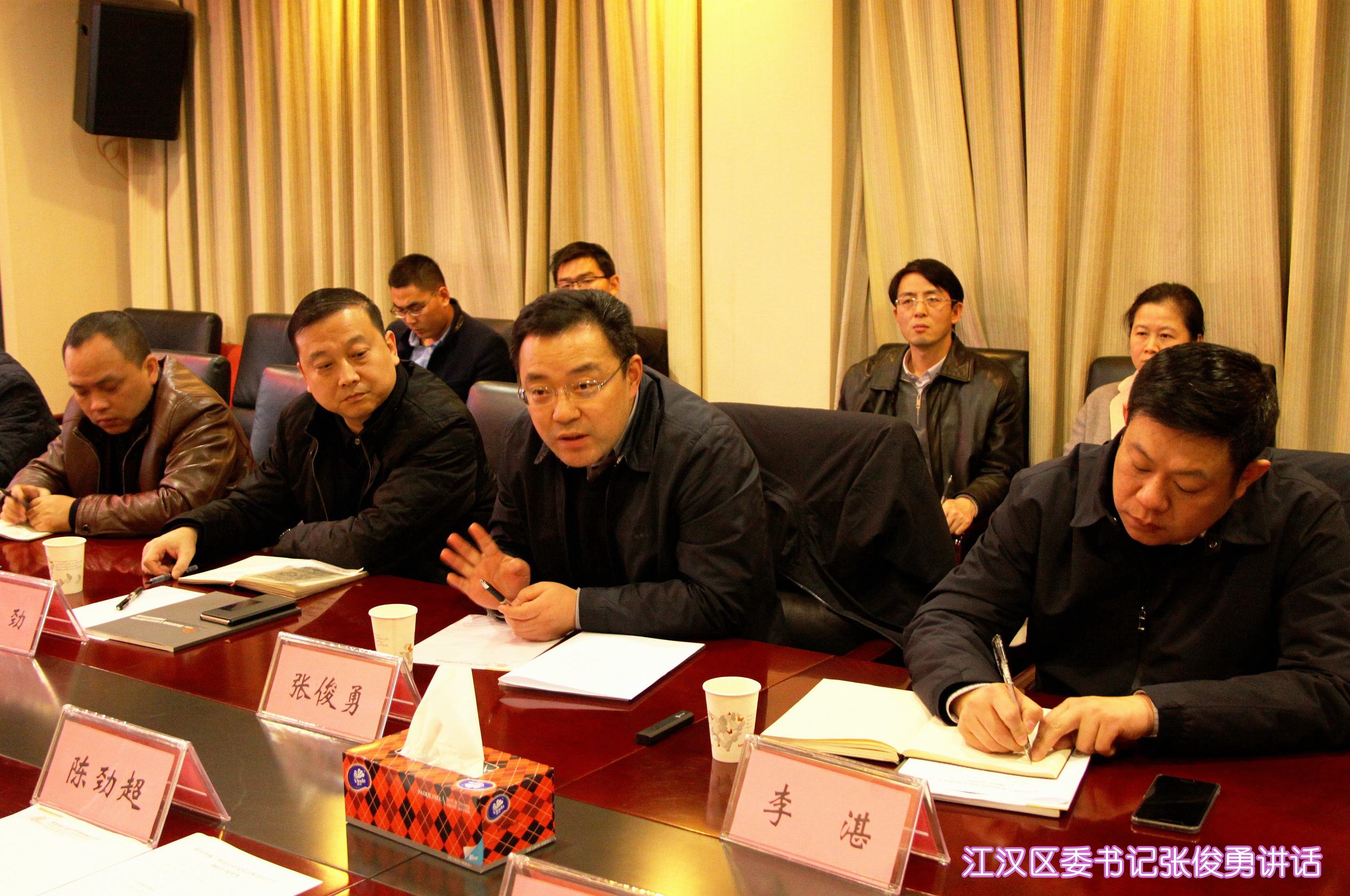 ??? 12月12日,江漢區(qū)區(qū)委書記張俊勇、區(qū)長李湛、常務副區(qū)長張勁、副區(qū)長葉勁松以及區(qū)建設局、江漢經(jīng)濟開發(fā)區(qū)、三恒公司等領導蒞臨公司調(diào)研,市城建委主任陳勁超、副主任向暉、首席市政工程專家龍世平、相關處室領導和公司領導班子成員參加了座談。