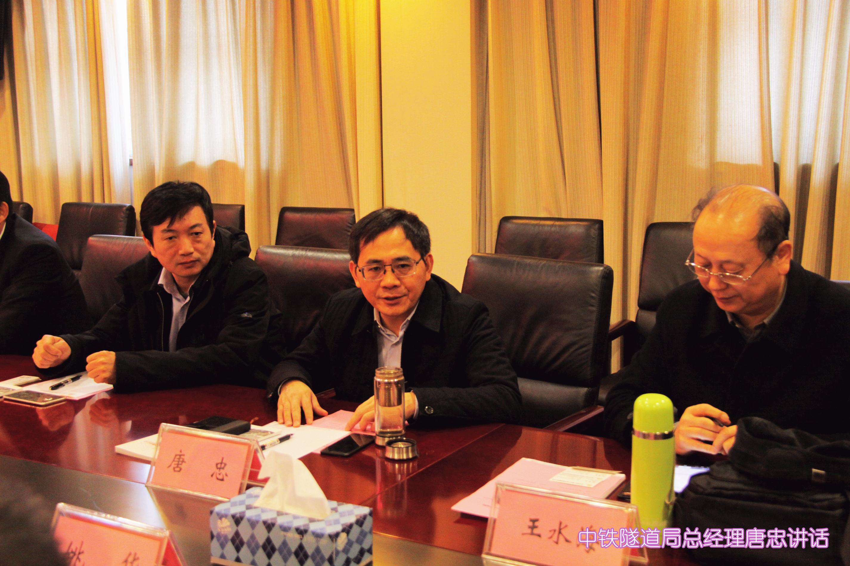 ??? 1月12日上午,中鐵隧道局集團有限公司總經(jīng)理唐忠一行蒞臨公司交流指導(dǎo),總經(jīng)理姚華、副總經(jīng)理陳建斌等參加了交流活動。
